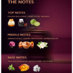 Top Notes: Poached Peach Crème, Cherry Nectar, Bergamot – a juicy, sparkling opening that instantly captivates.