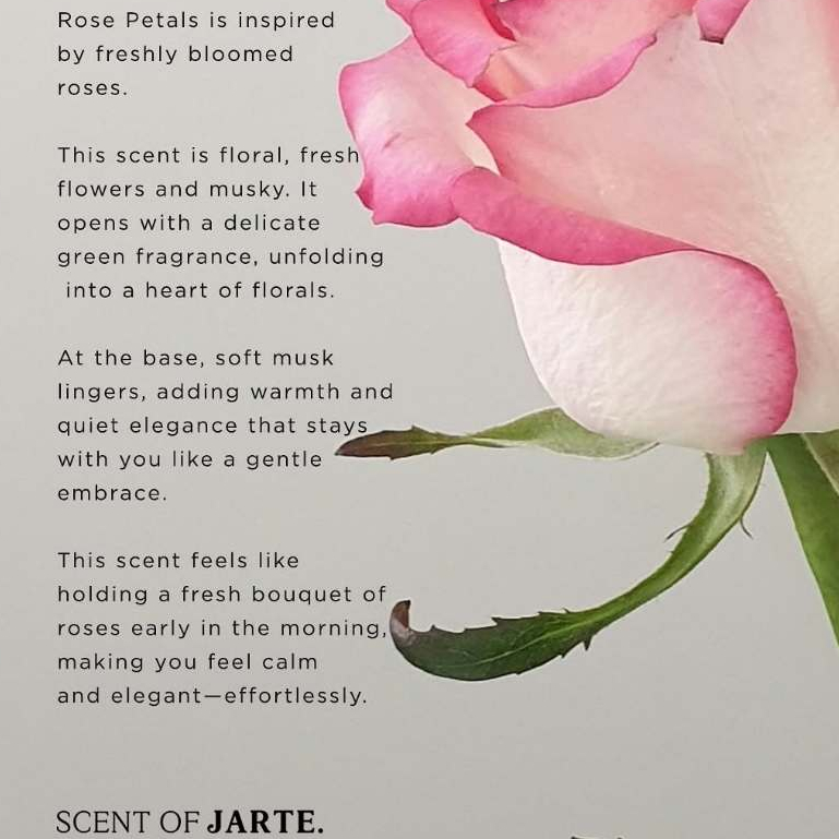 A tribute to the timeless elegance of freshly bloomed roses, Rose Petals is a fragrance that feels as pure and graceful as a morning bouquet. Light, airy, and slightly watery, it balances soft floral beauty with a touch of green freshness that soothes the senses.